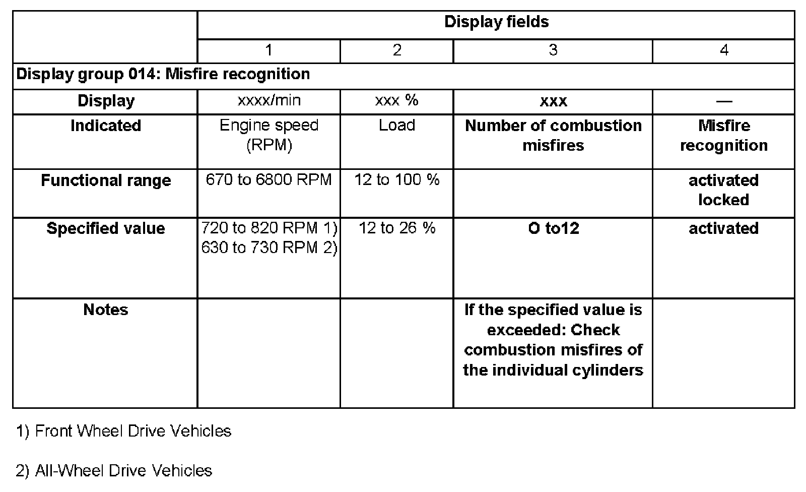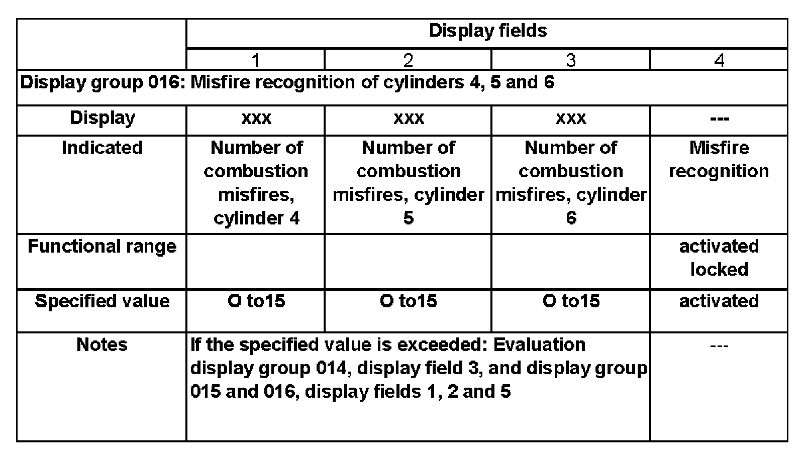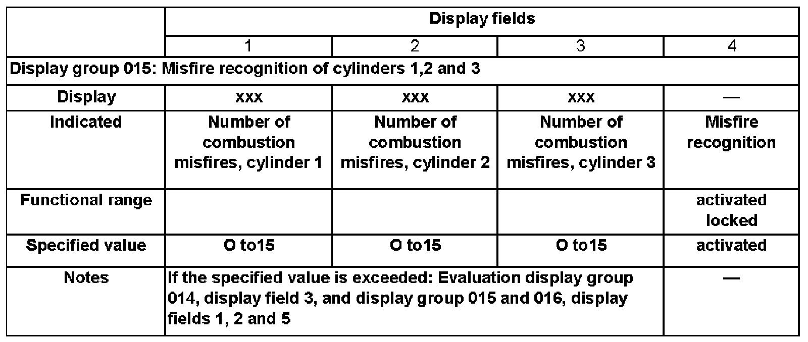 - Check misfire recognition in display fields 3 and 4