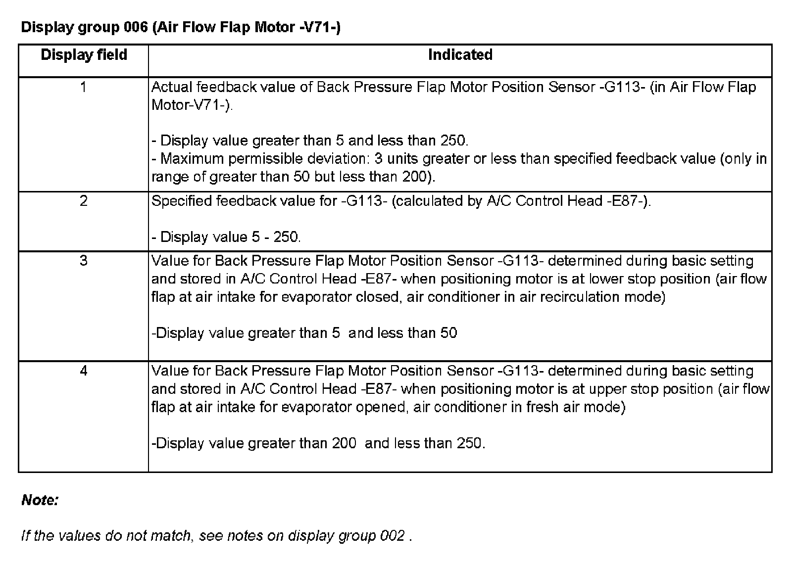 Display Group 006 (Air Flow Flap Motor -V71-)
