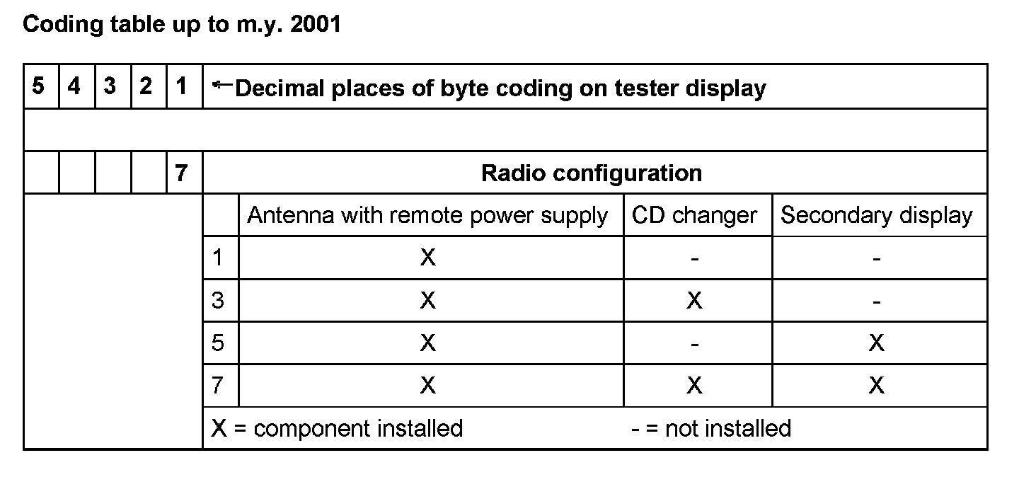 - Radio configuration: 7 = radio with CD changer and secondary display