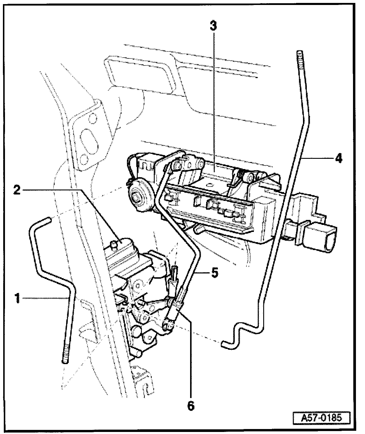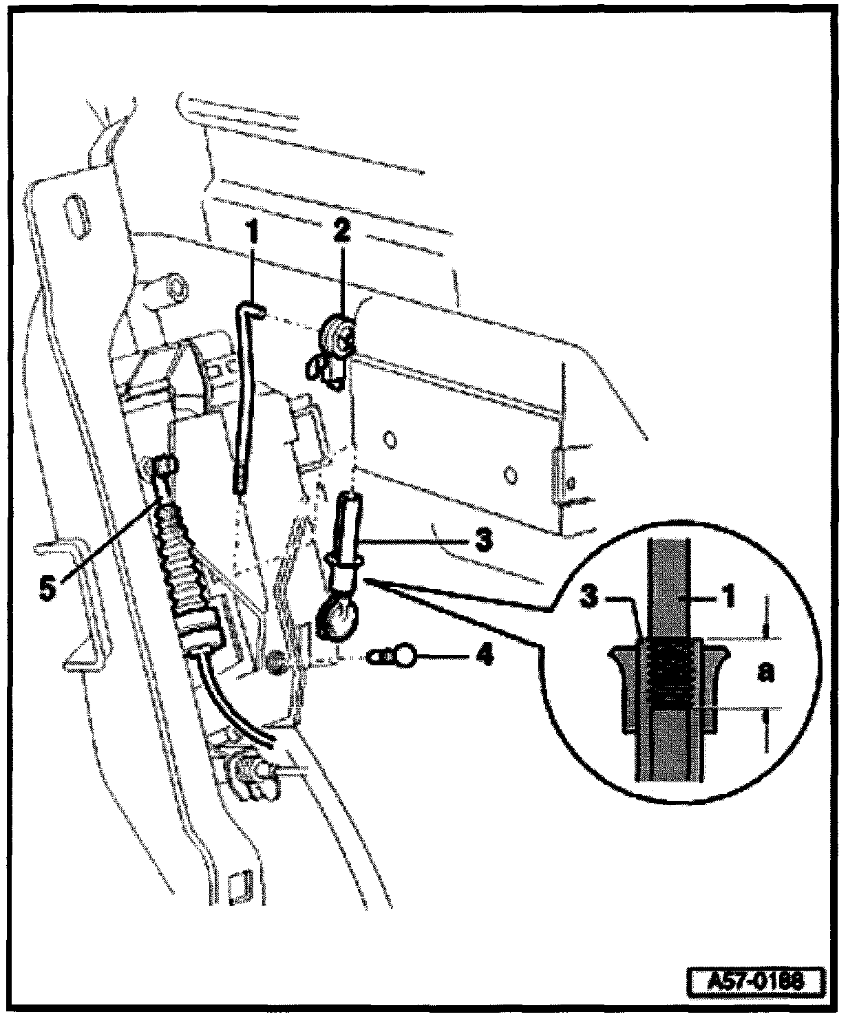 - When removing door handle, securing rod -1- and operating rod -5- must be disengaged at door handle