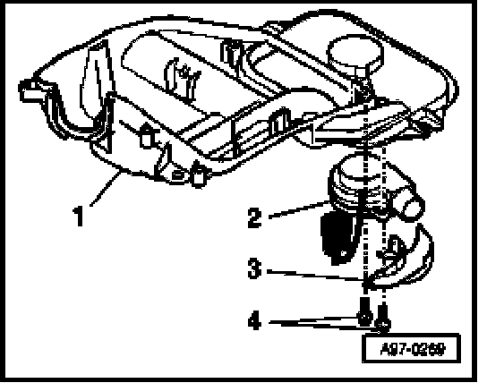 - Remove screws -4- and detach fan -2- with air duct -3-.