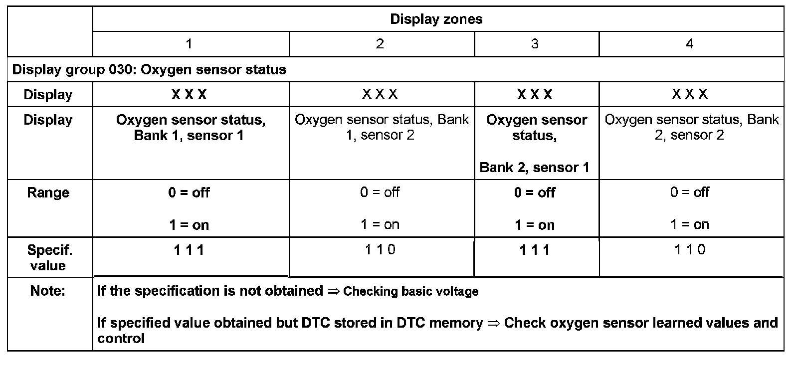 - The "oxygen sensor status" indicates the condition of the oxygen sensor control and the oxygen sensors.