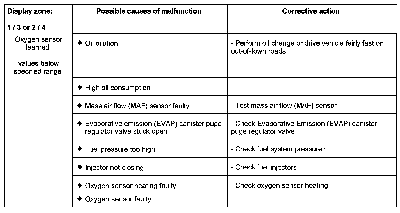 Checking Oxygen Sensor Learned Values And Oxygen Sensor Control
