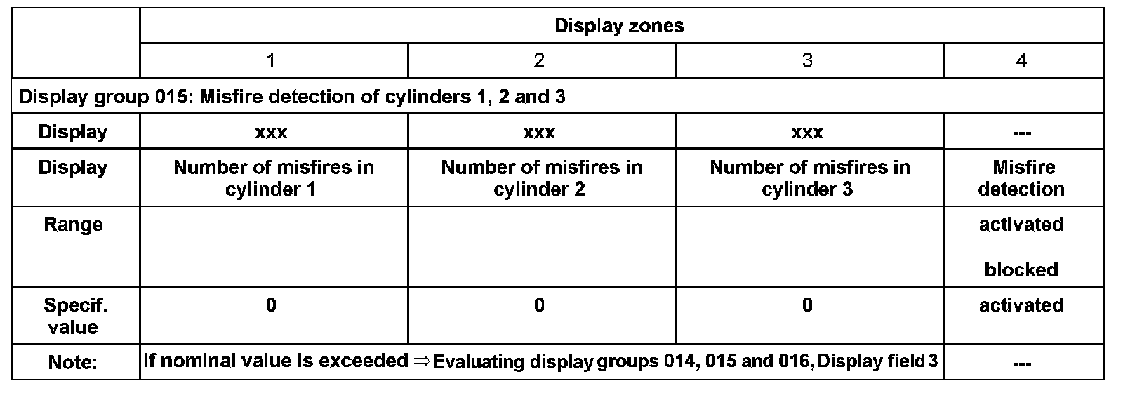 Evaluating display groups 014, 015 and 016, Display field 3: