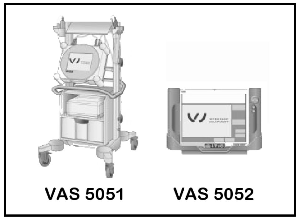 - VAS 5051: connected to the vehicle and to 110V AC power supply at all times during the procedure.