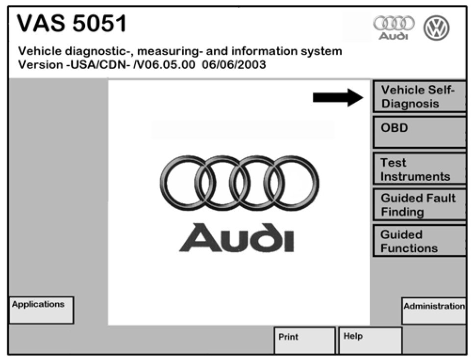 - Connect VAS 5051 or VAS5052 to the vehicle