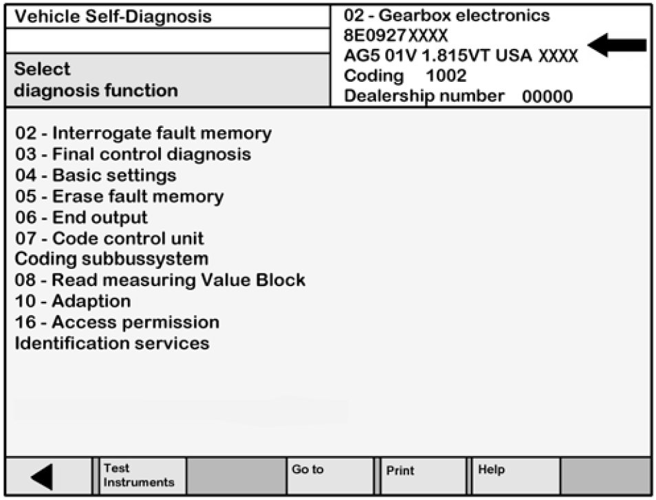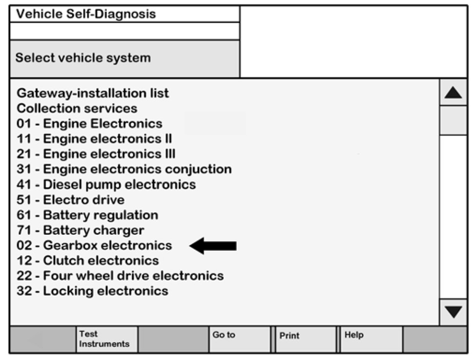 - Select vehicle system "02 - Gearbox electronics" -arrow-