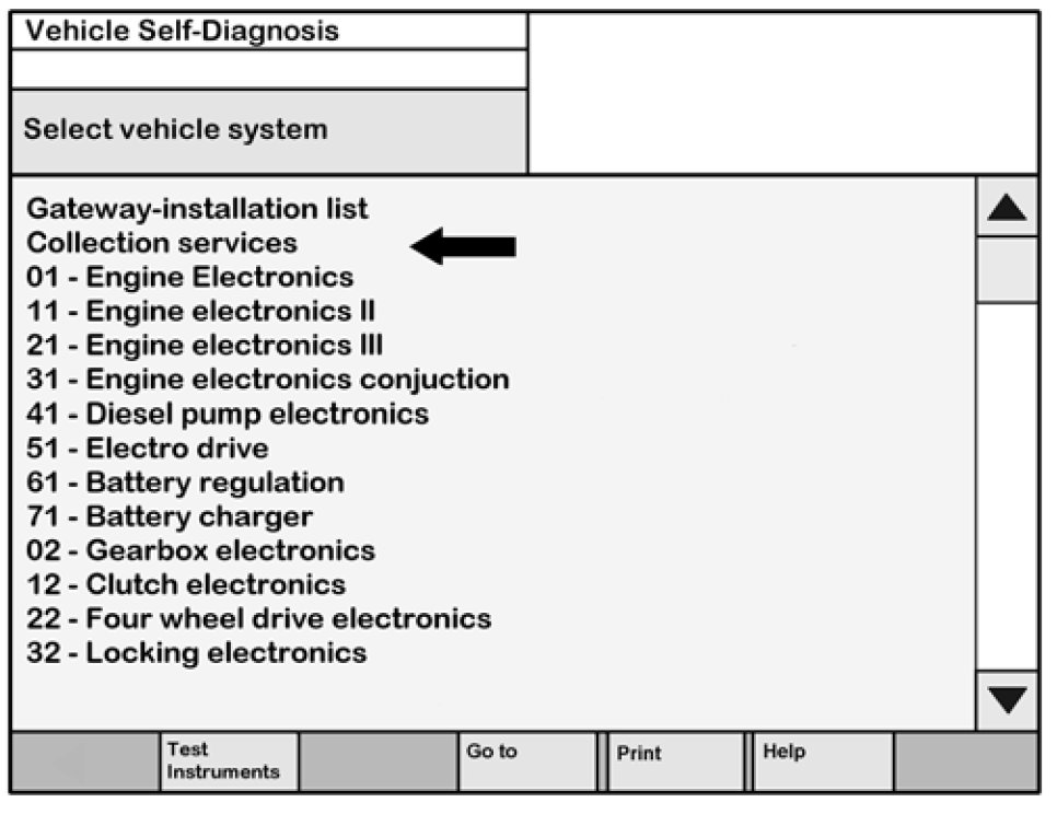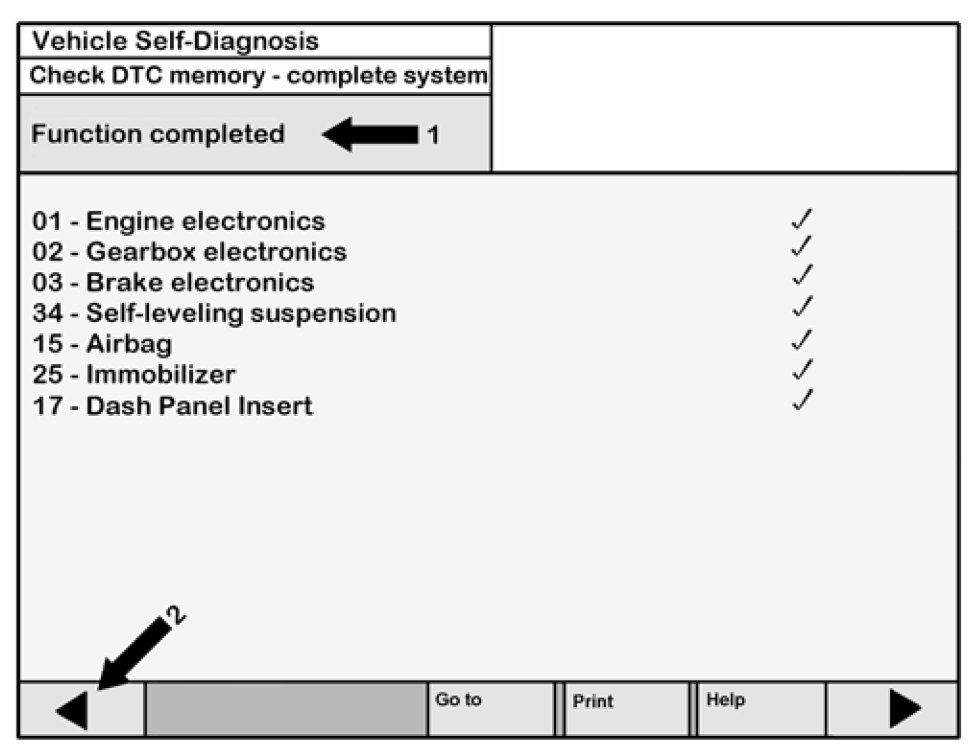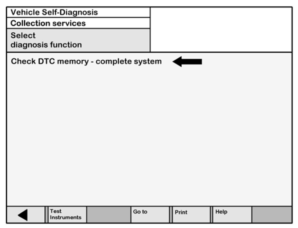 - Select "Check DTC memory - complete system" -arrow- which will interrogate all fault memories
