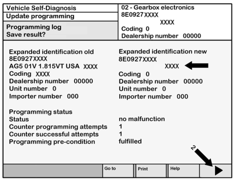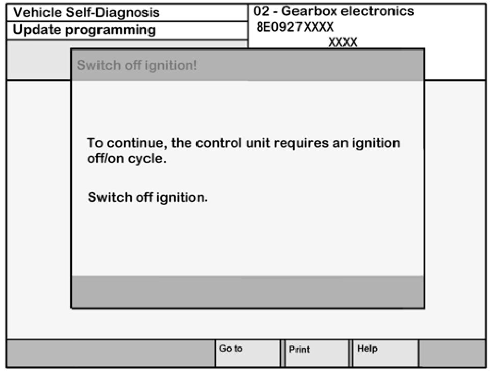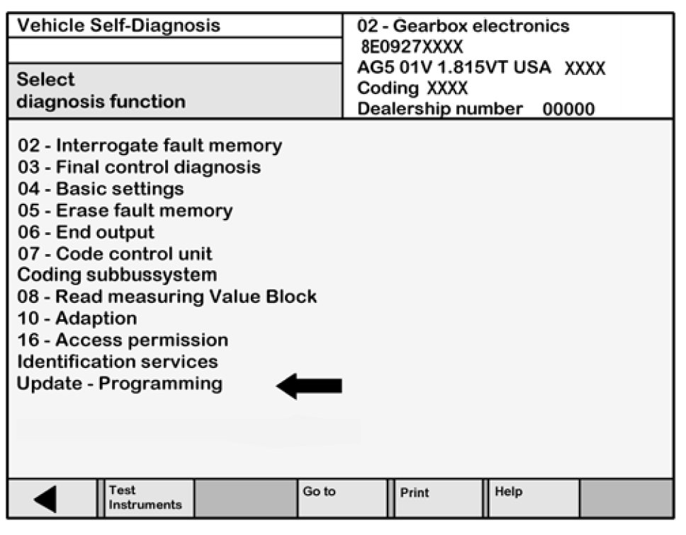 - If software level of TCM does not require updating, the "Update - Programming" option will not appear, no further work required, disconnect VAS 5051/5052