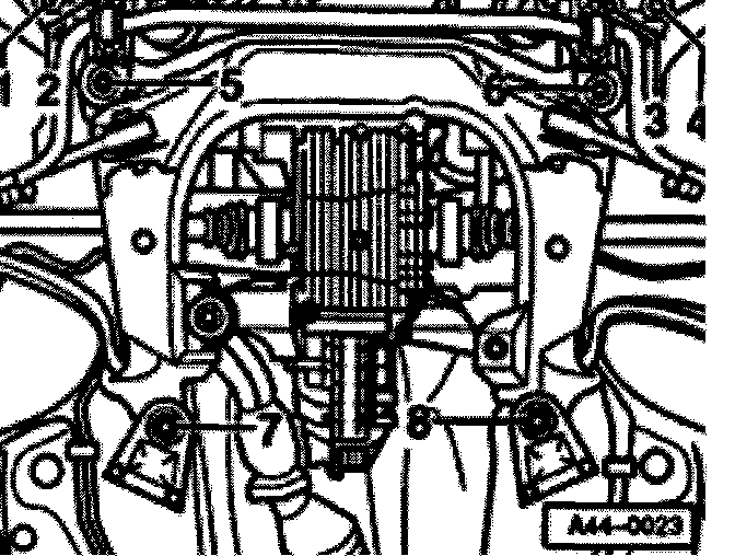 ^ Loosen hex bolts -1-, -2-, -3-, -4-, -5-, -6-, -7- and -8-.