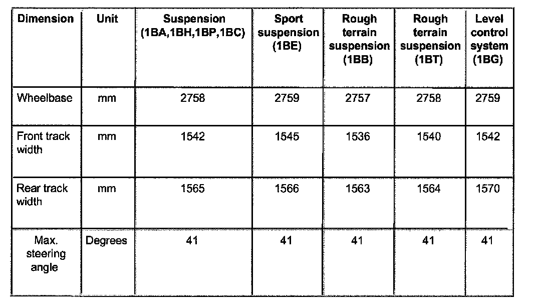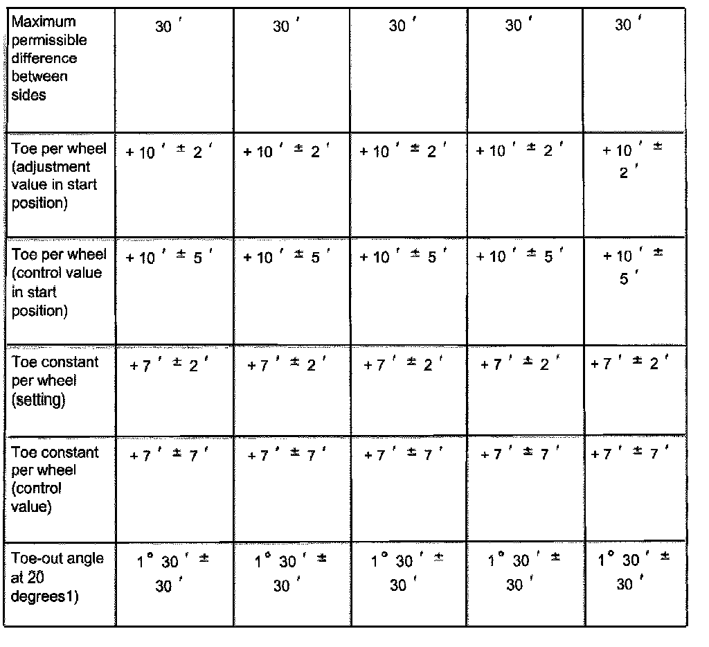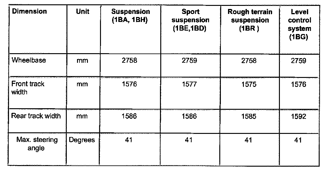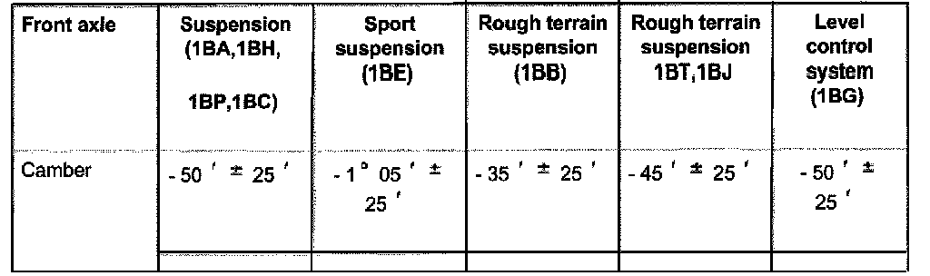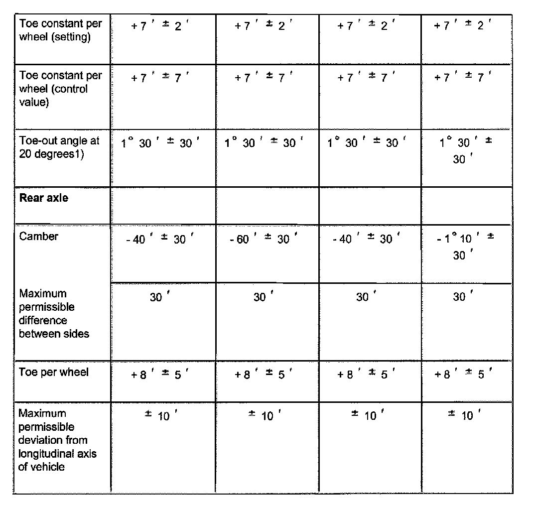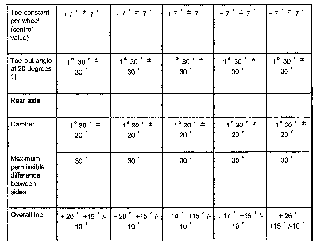 ^ Wheels should not be aligned until the vehicle has been driven 1,000 - 2,000 km, since it takes this long for the coil springs to settle (not applicable for Allroad).