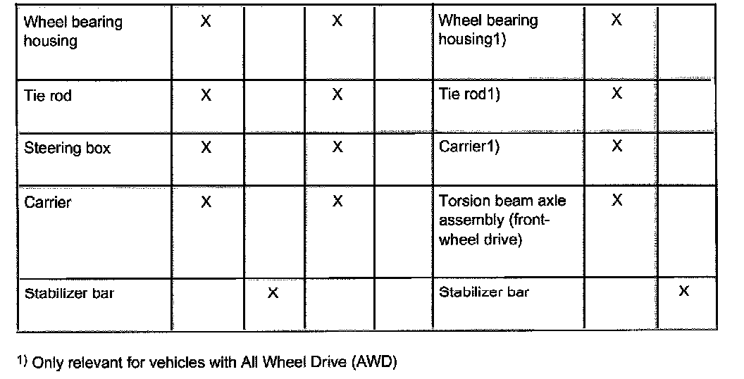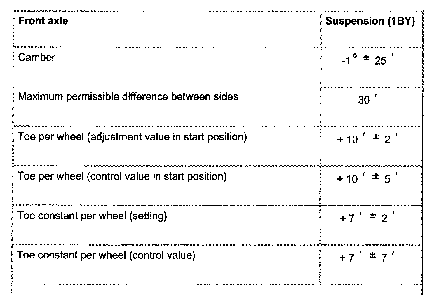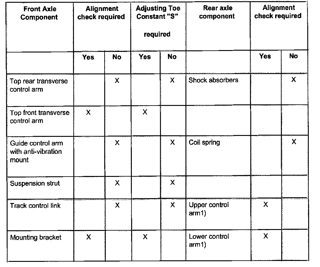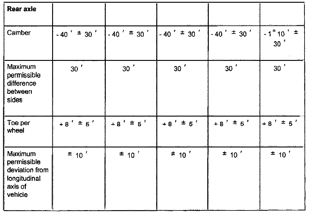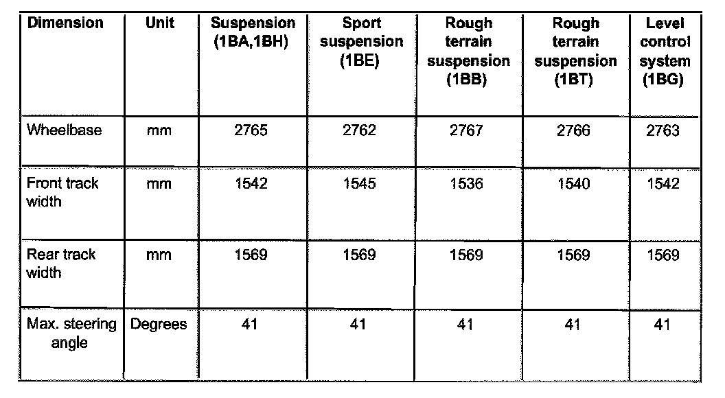 ^ Wheels should not be aligned until the vehicle has been driven 1,000 - 2,000 km, since it takes this long for the coil springs to settle (not applicable for Allroad).