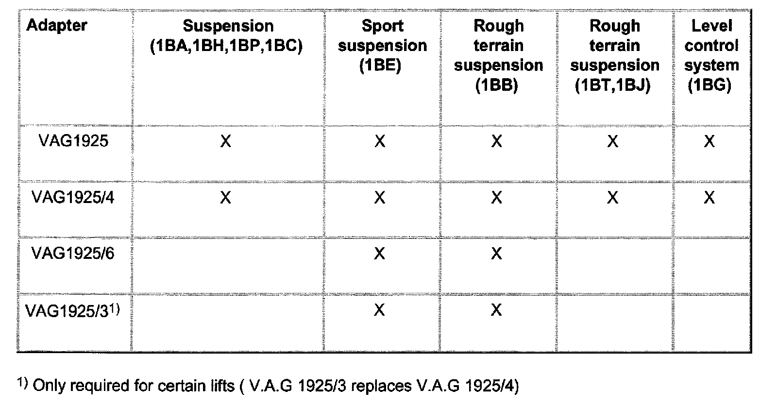 1) Only required for certain lifts (V.A.G. 1925/3 replaces V.A.G. 1925(4)
