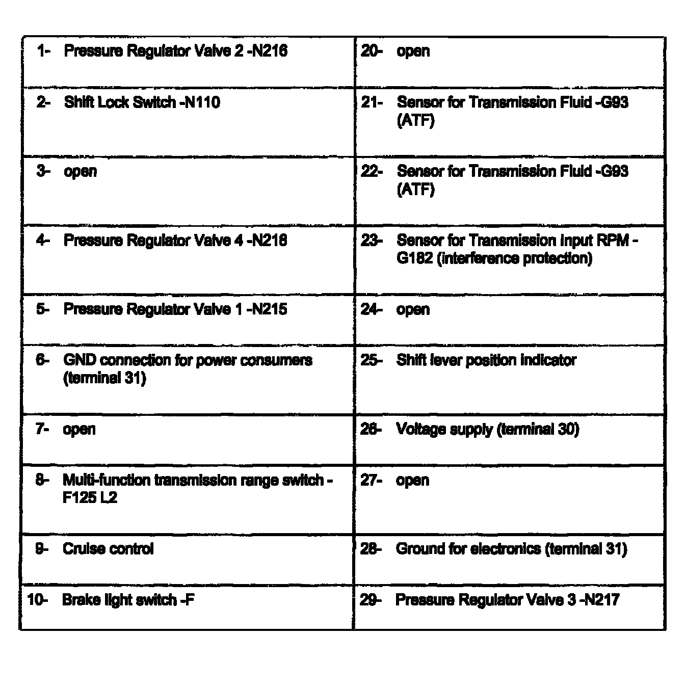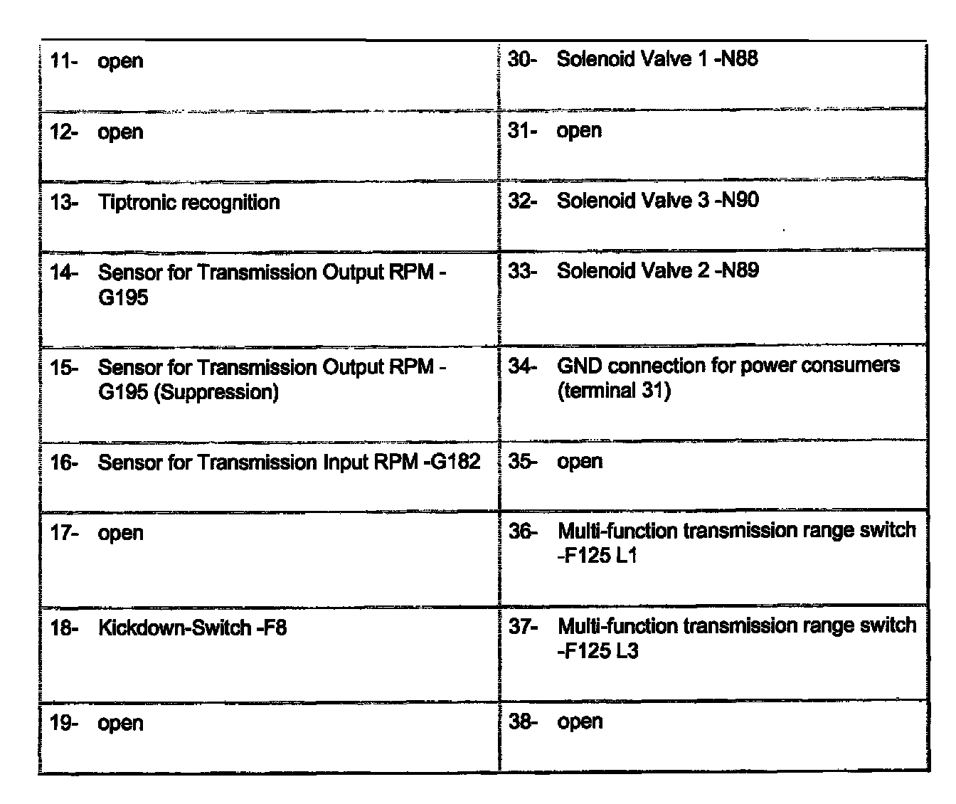 ^ The pin numbers of the connectors correspond with the socket numbers of test box V.A.G 1598120.