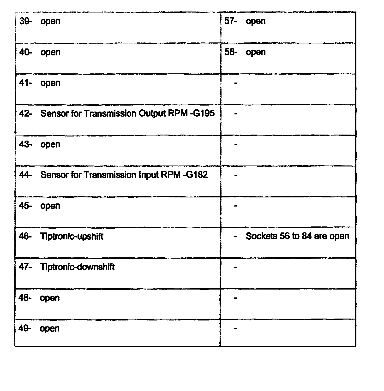 Connector pin-out, pins 39 thru 49 and 57 thru 67