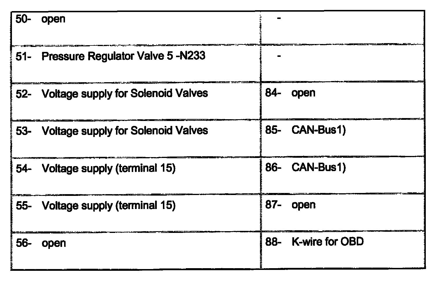 Multi-pin connector (88-pin connector) of Transmission Control Module -J217 (sockets of V.A.G 1598/20)