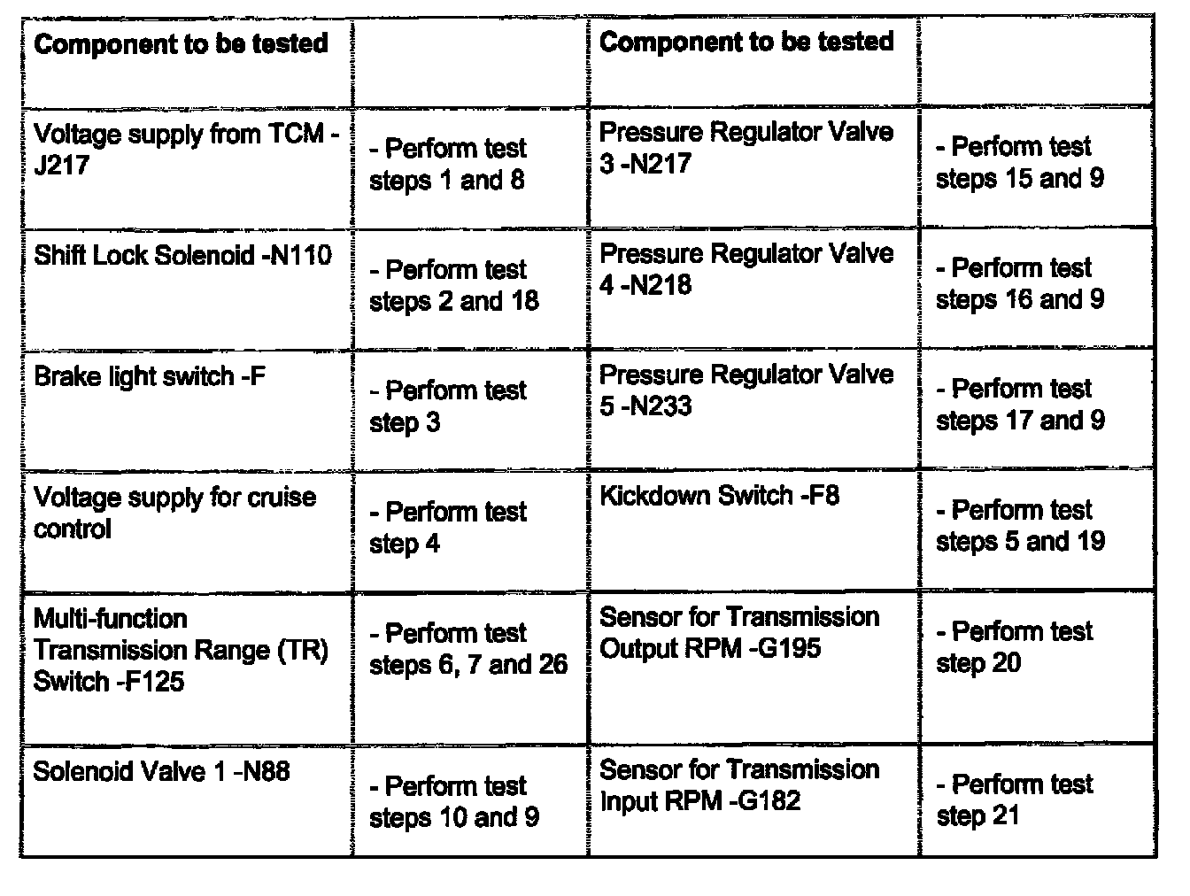 - Switch off ignition for all test procedures. Disconnect multi-pin connector for Transmission Control Module-J217 (The control module is located in front of the passenger's seat under the footwell carpet). Connect test box V.A.G 1598/20 to harness connector.