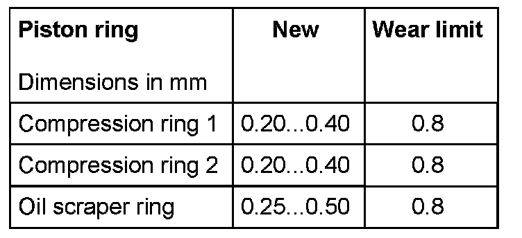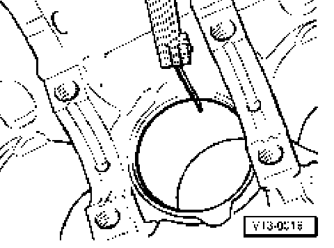 ^ Measure pistons approximately 10 mm from lower edge of skirt, at 90° to piston pin axis.
