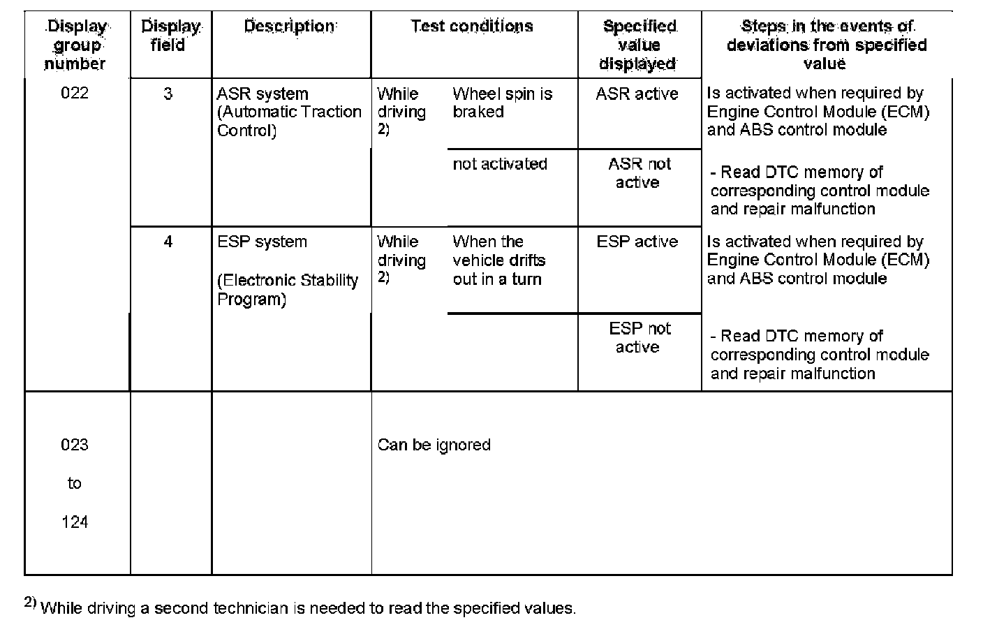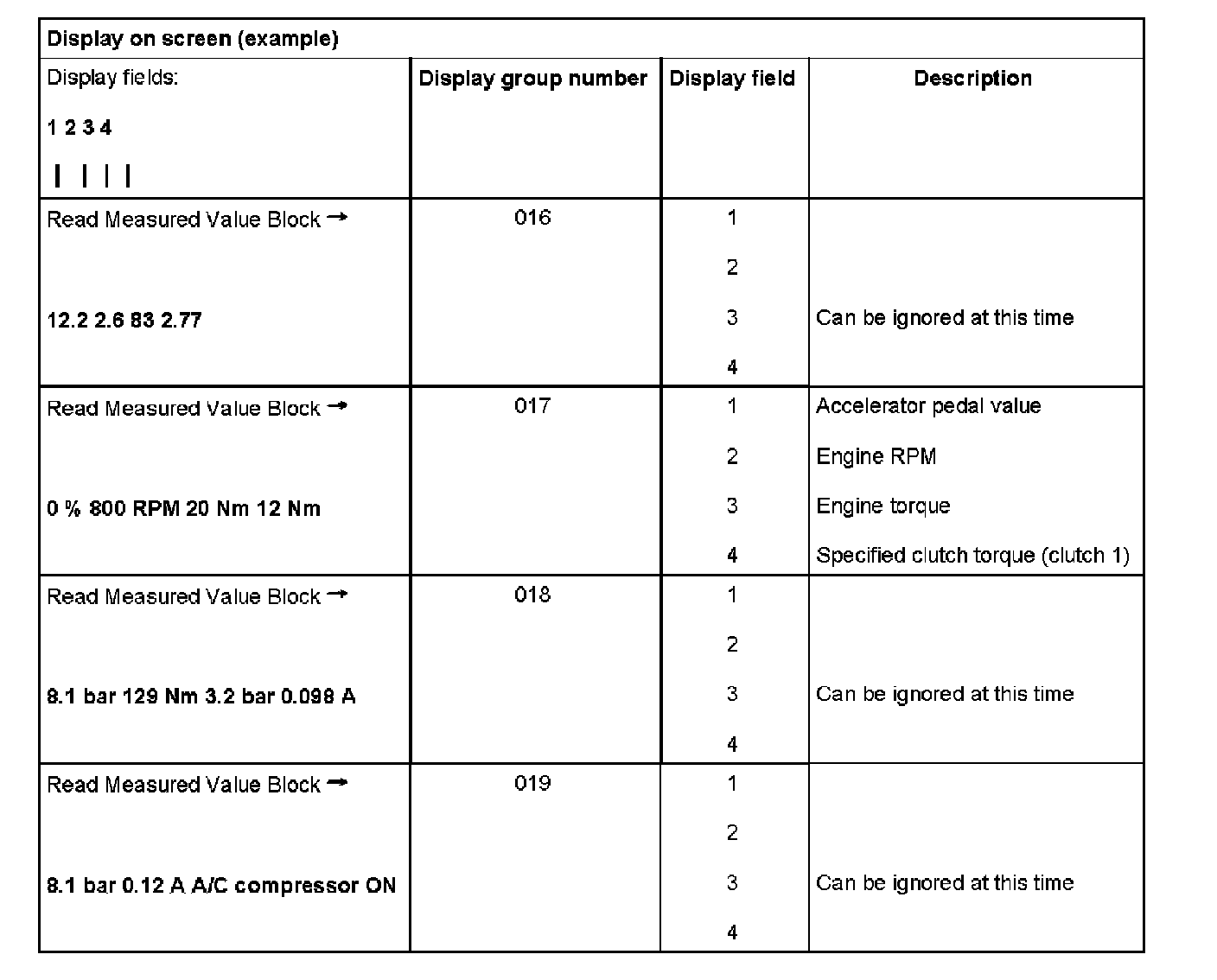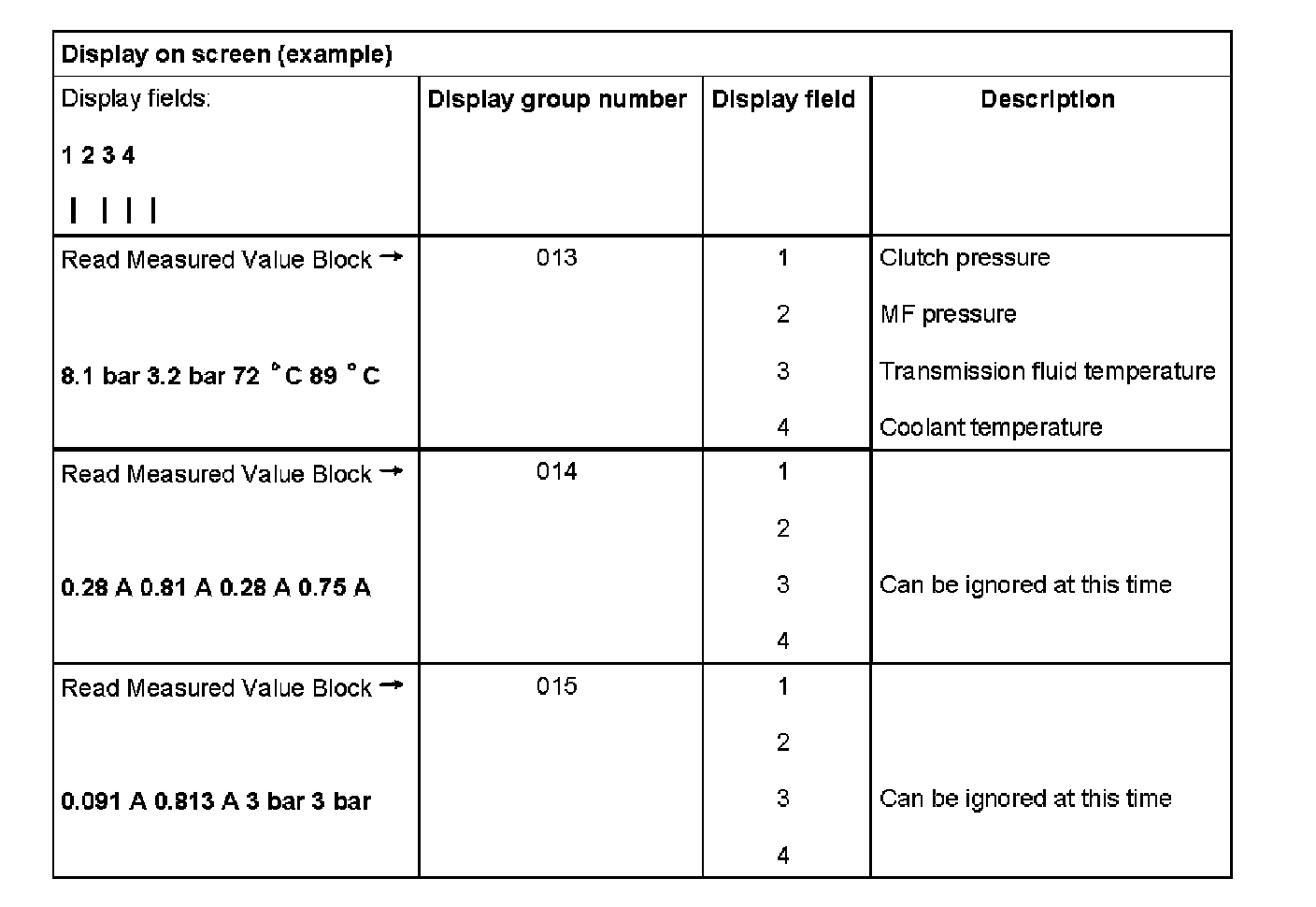 - Touch -1- diagnostic function "08 Read Measured Value Block".