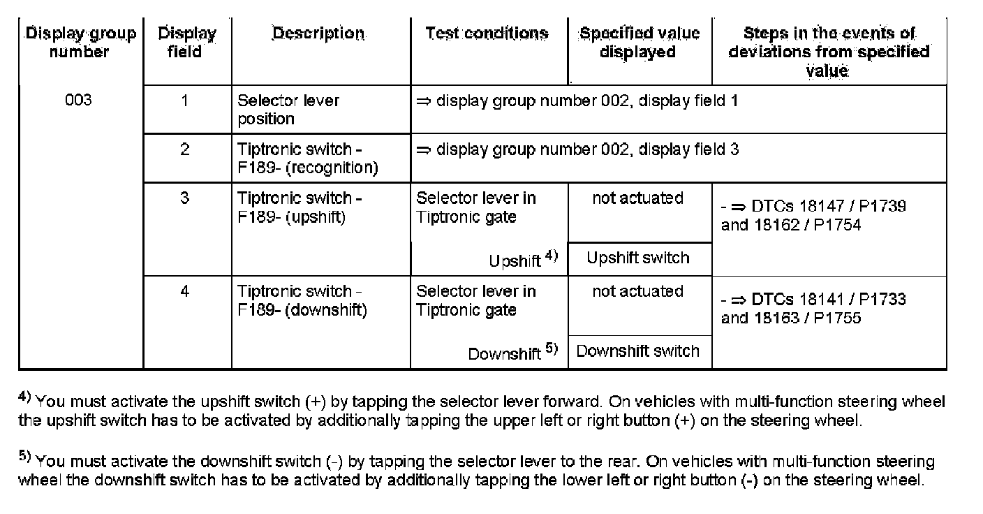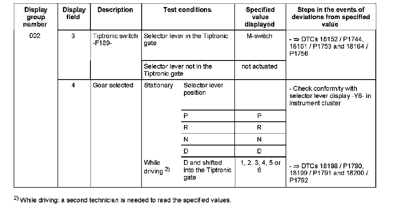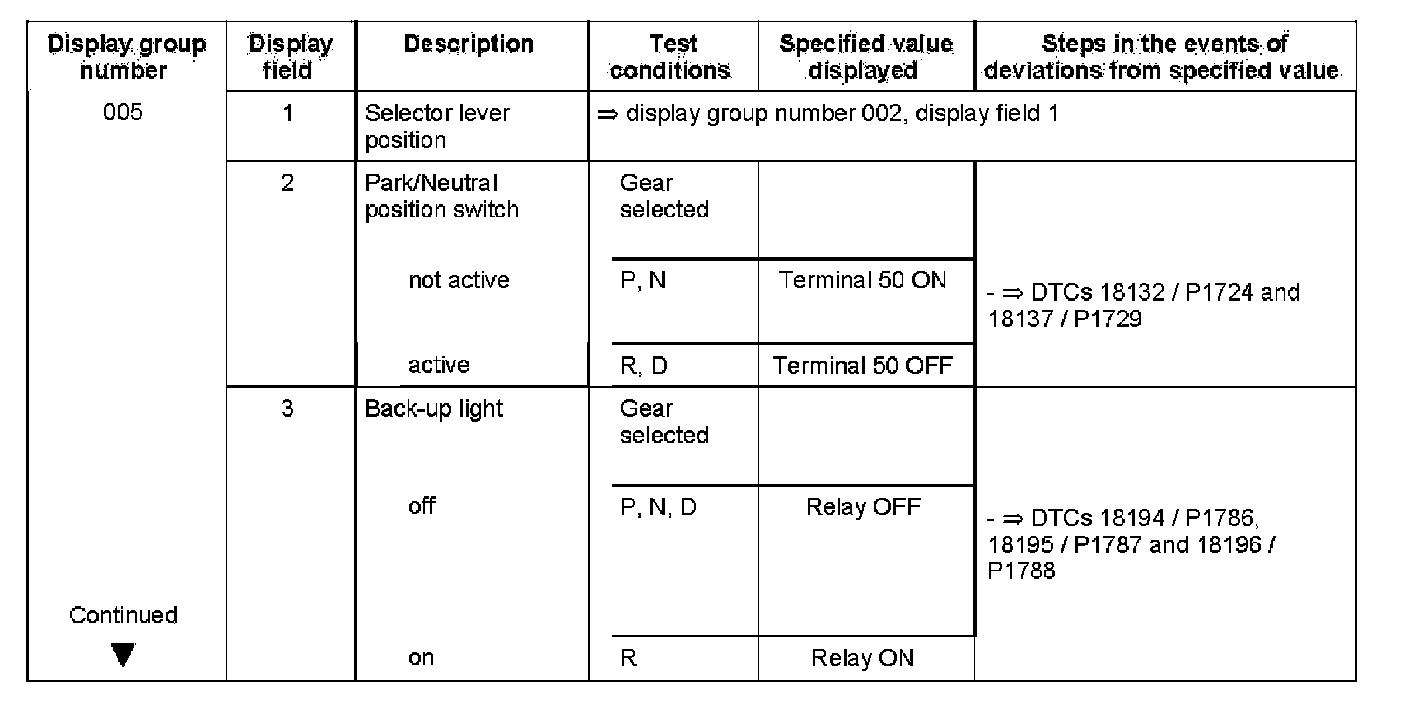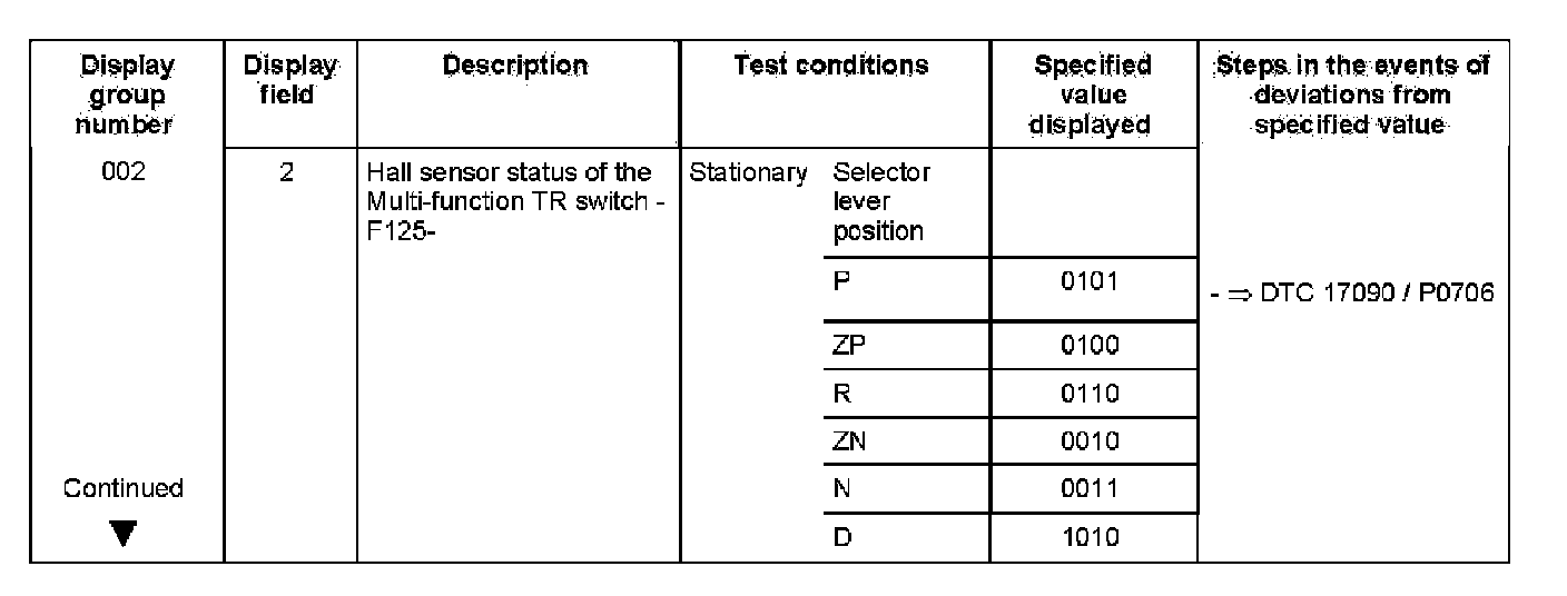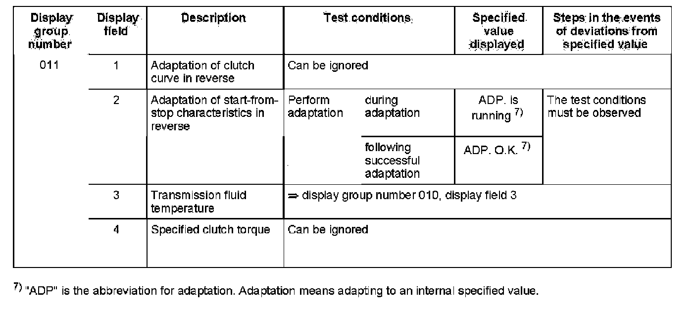 ^ Check whether transmission fluid temperature in display field 3 is higher than 60°C. A short test drive may be necessary to reach this temperature.