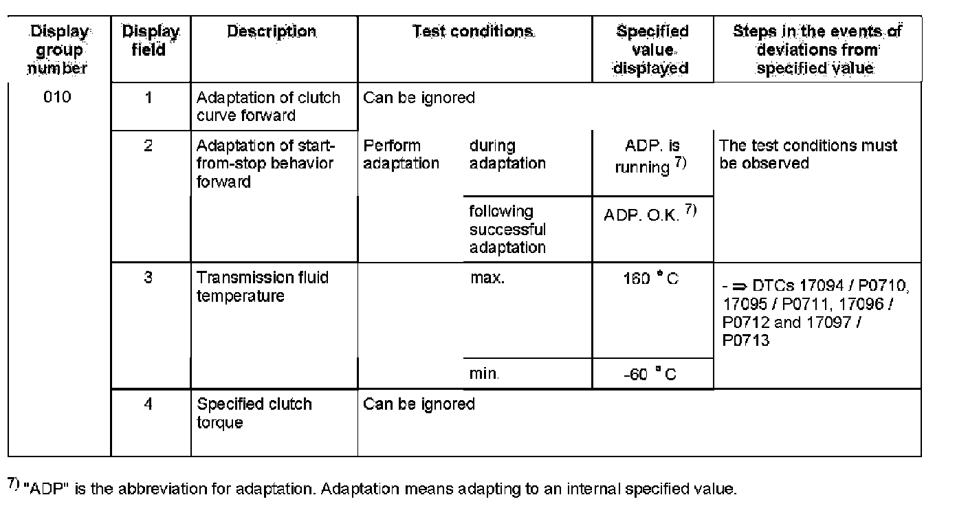 ^ Read DTC memory and correct malfunction. Adaptation must be performed again afterward.