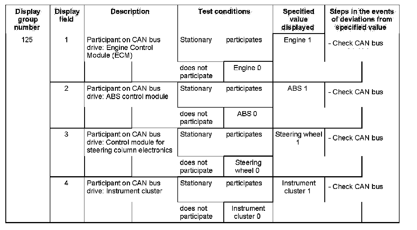 ^ If "0 " is displayed and not trouble code has been set in the DTC memory, the corresponding control module does not have CAN capability (or is faulty).