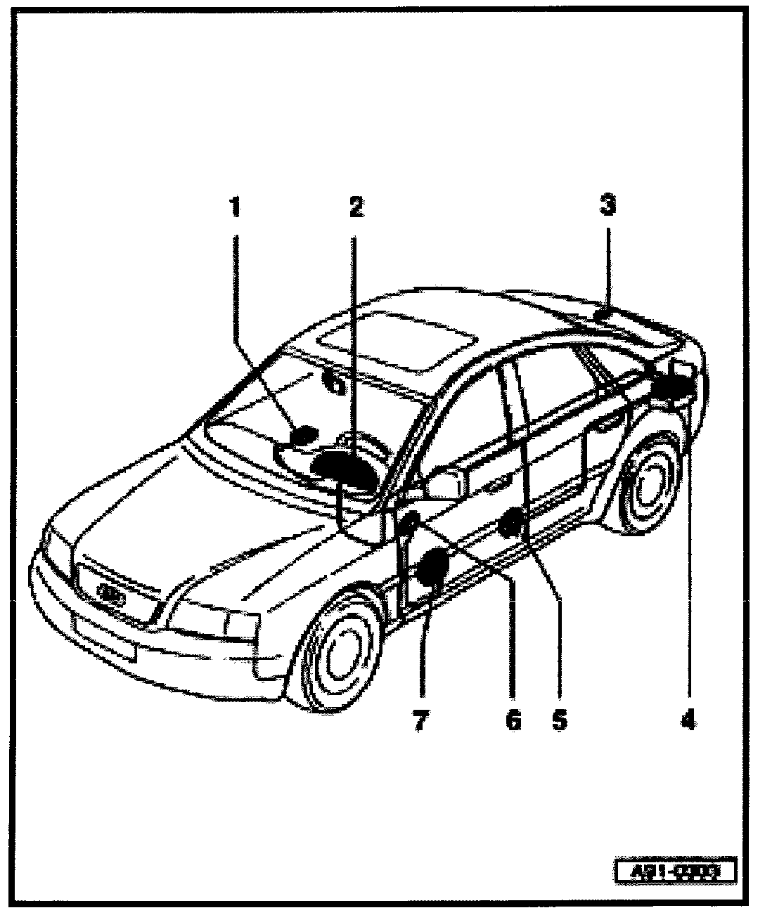 3 - Antenna for navigation (GPS) -R50- or Antenna for radio/telephone/navigation (GPS) -R52-