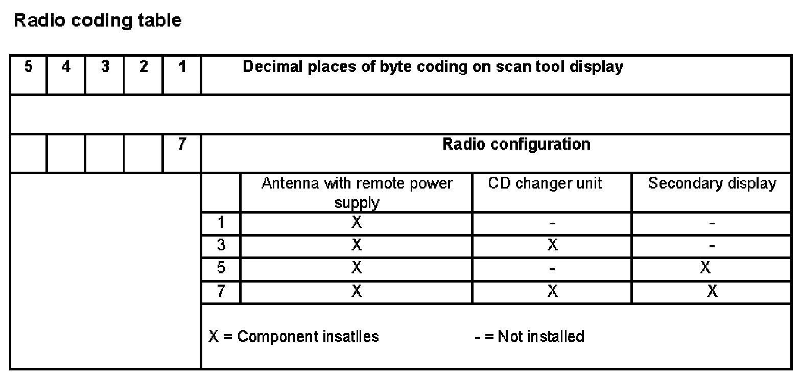 - Radio configuration: 7 = radio system with CD changer unit and secondary display