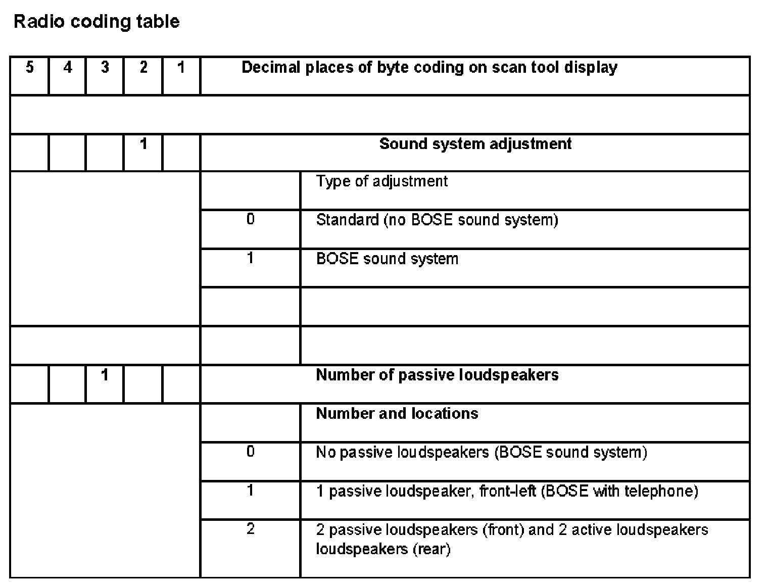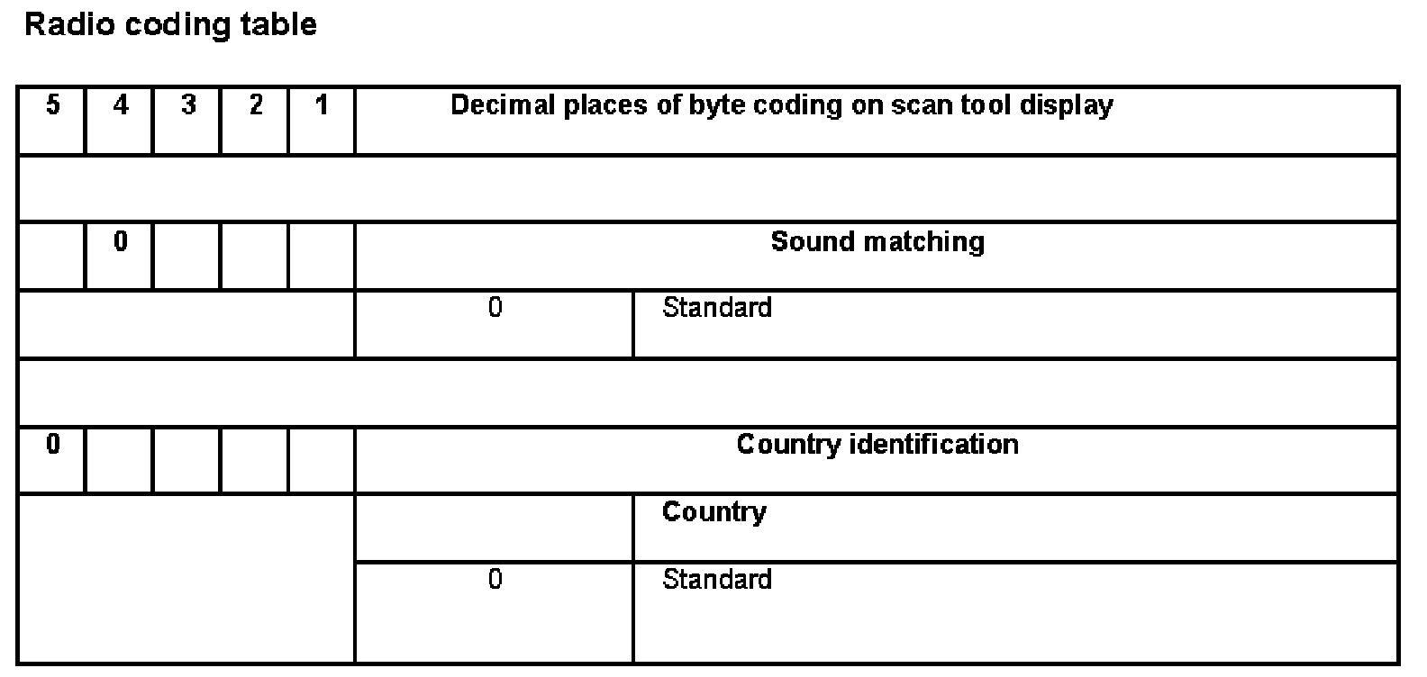 Radio coding table