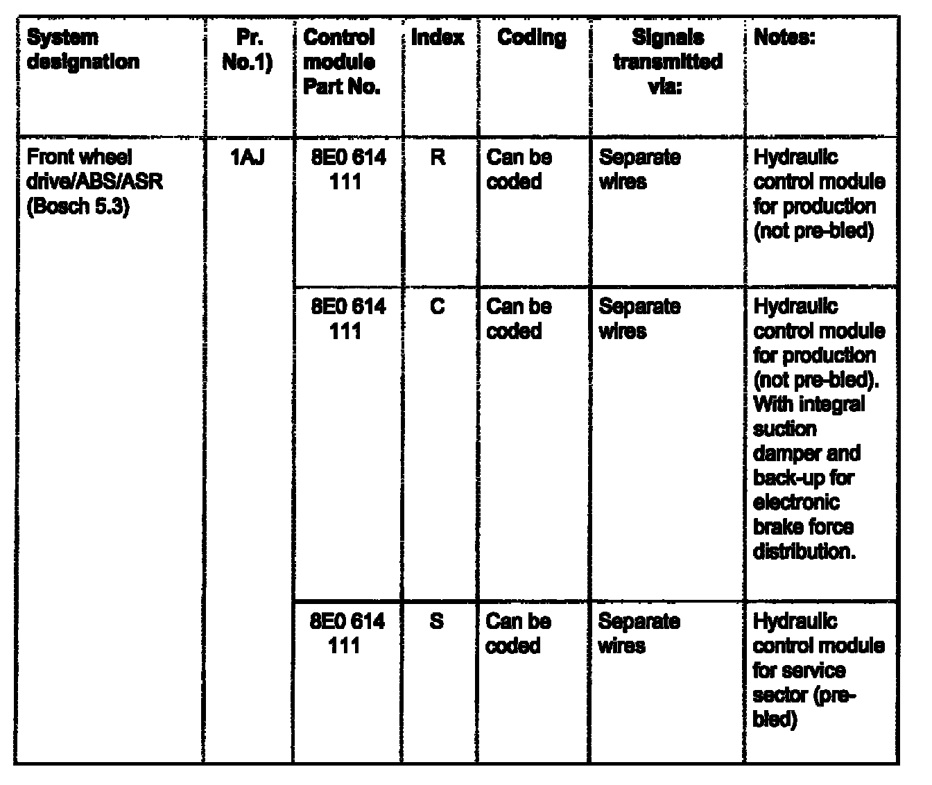 ABS, EDL, ASR Control Module Versions