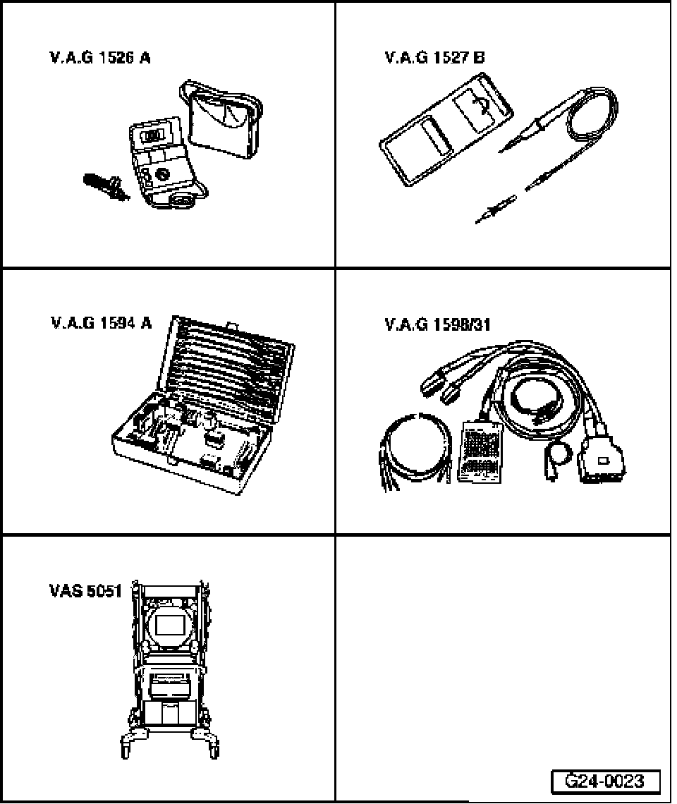 - Connect test box VAG 1598/31 to wiring harness for engine control module; do not connect engine control module. Wiring and Component Testing Using VAG1598/31 Test Box