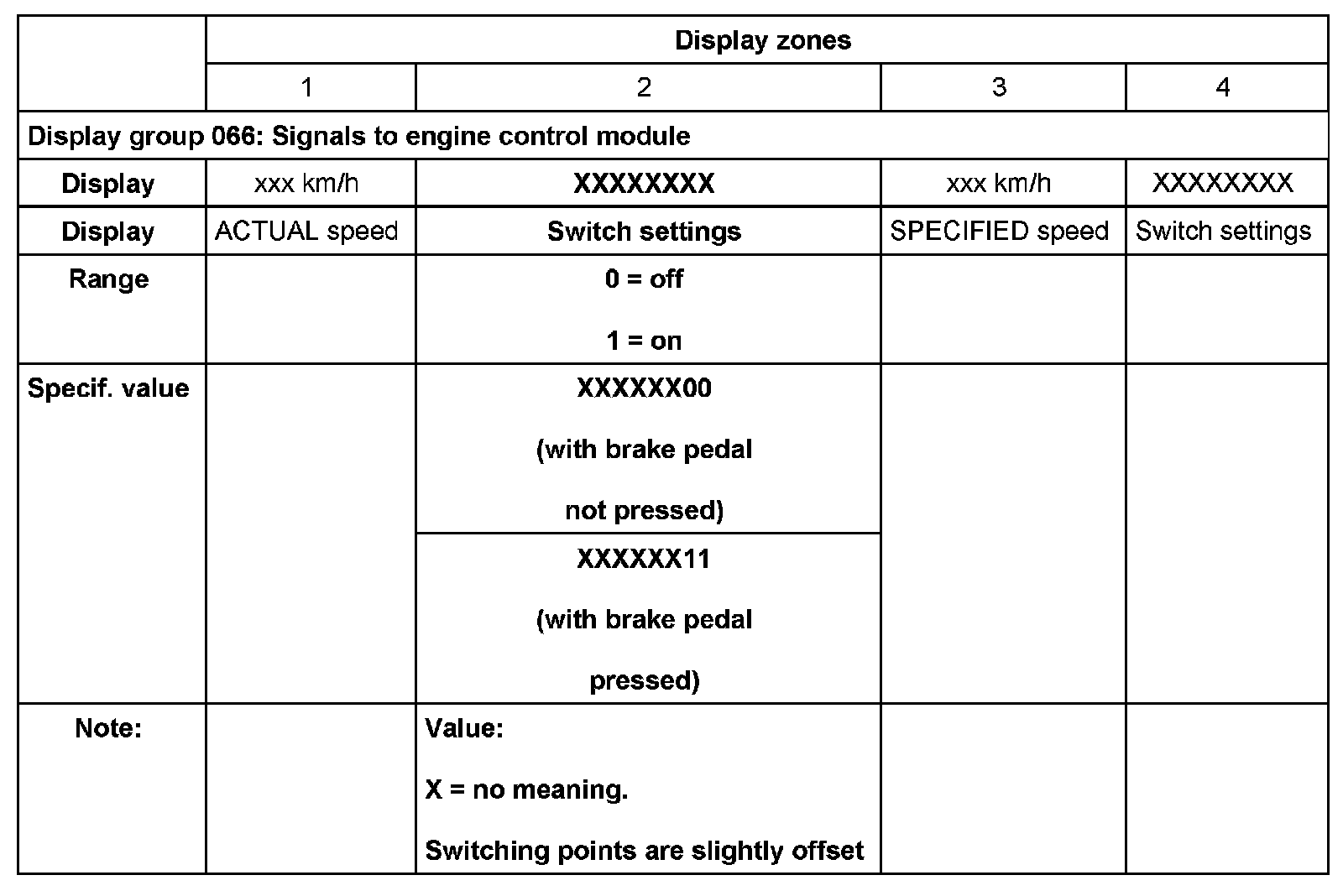 - If the brakes are activated when the accelerator pedal is held at a constant position, the engine speed is immediately reduced to idling speed. Incorrectly adjusted switches may lead to unwanted regulating actions.