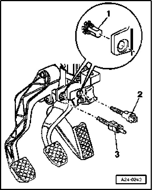 - Disconnect connector from brake light/brake pedal switch -2-.