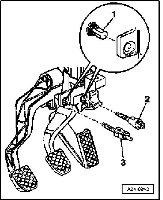 - Disconnect connector from clutch pedal switch -3-.