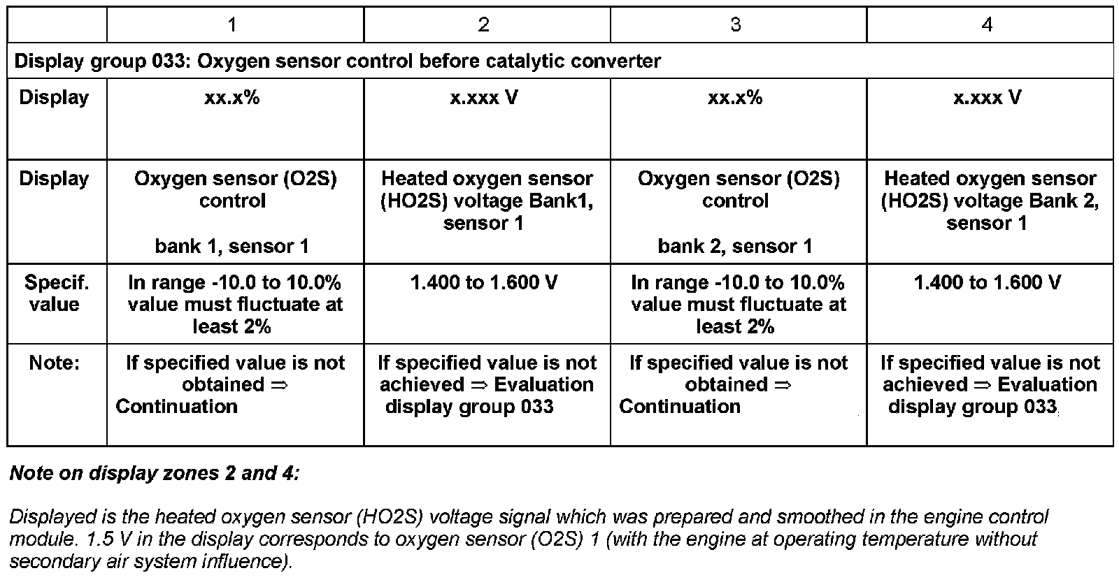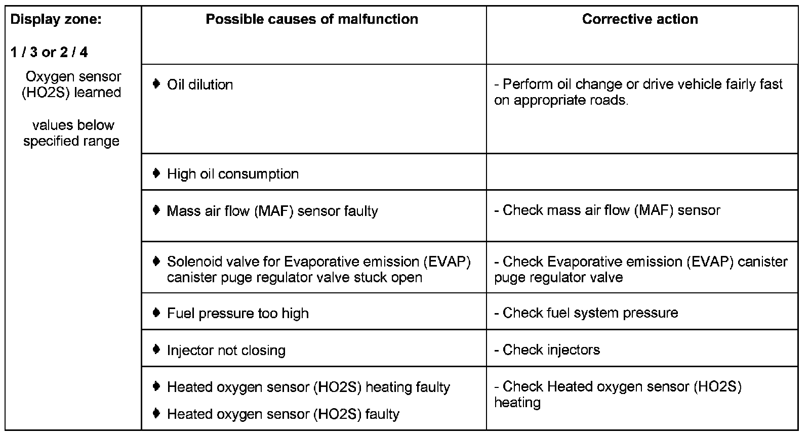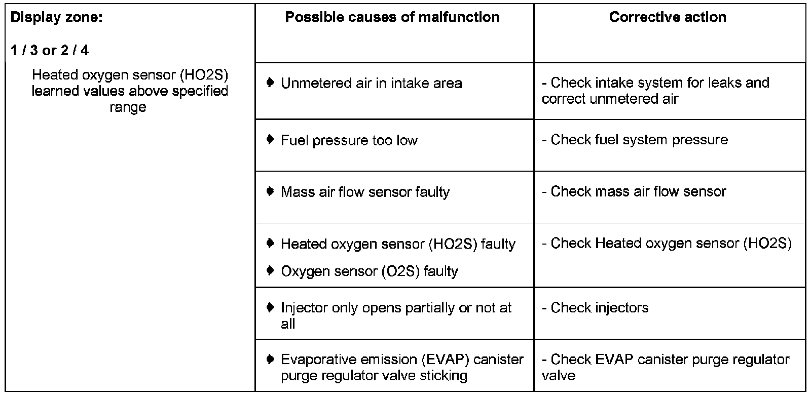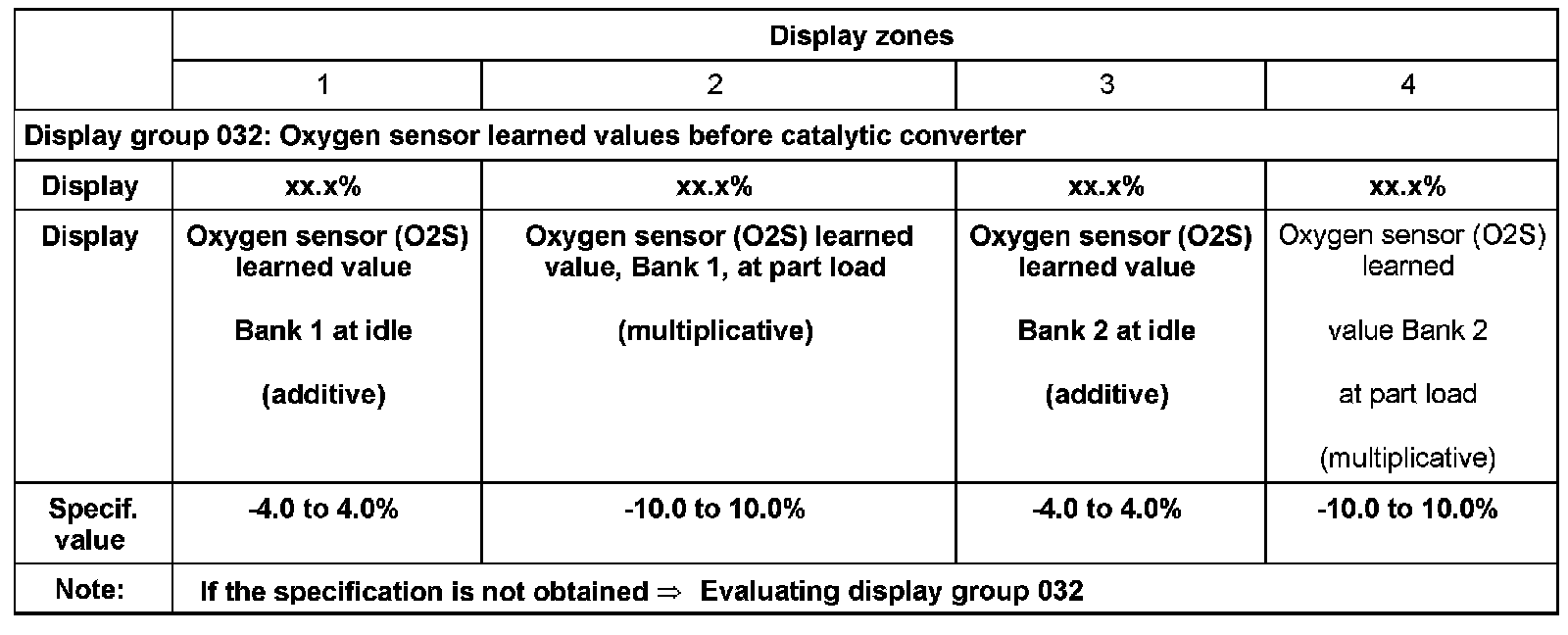 - Check oxygen sensor learned values in display zones -1 to 4-.