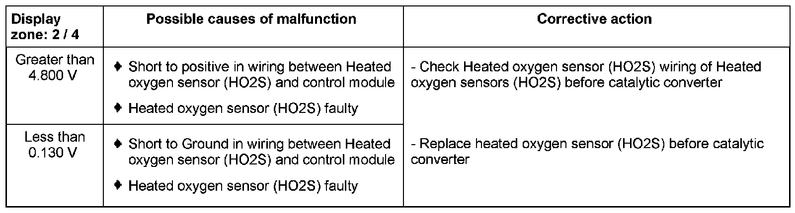 If the specified result is not achieved in display zones 1 or 3, or if the value does not fluctuate by at least 2%, even after the test drive: