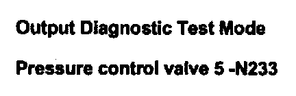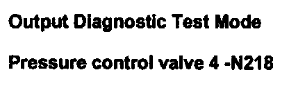 ^ Pressure Control Valve 1 -N215, Pressure Control Valve 2-N216, Pressure Control Valve 3-N217, Pressure Control Valve 4 -N218 and Pressure Control Valve 5 -N233 are activated by the Output Diagnostic Test Mode (DTM). A direct function test of these components is not possible, however possible malfunctions that could occur are detected by OBD and stored in DTC memory.
