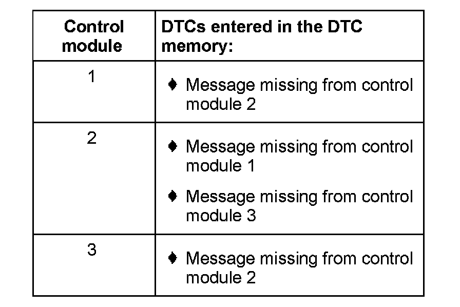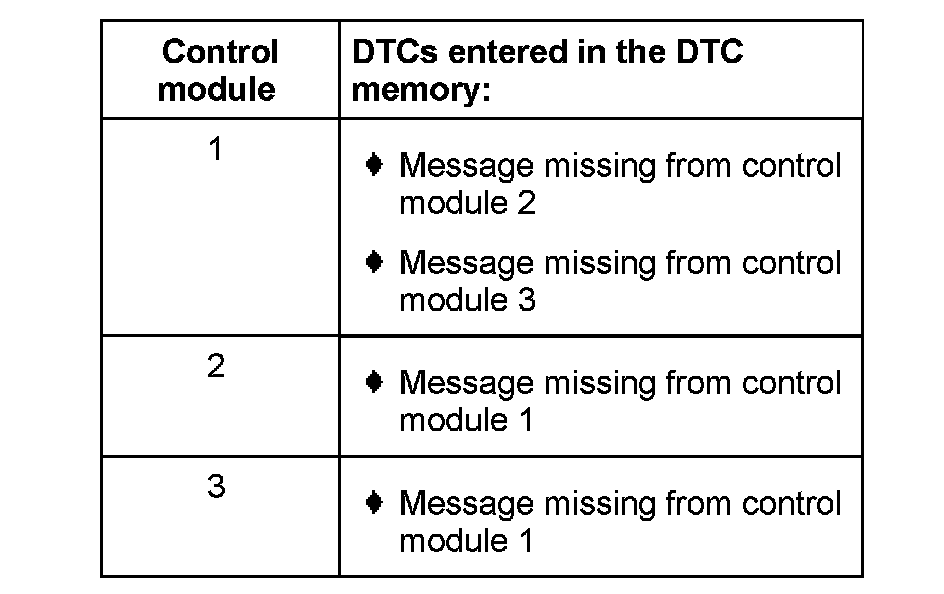 Based on the DTC's entered in the DTC memories, it can be seen that control module 1 is not connected to control modules 2 and 3