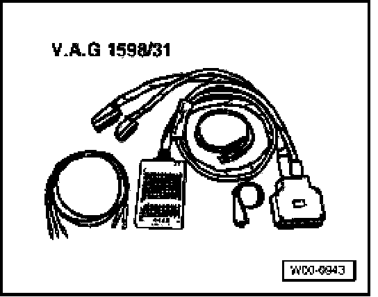 - The test box VAG 1598/31 is designed in such a way to be connected simultaneously to the engine control module wiring harness and to the engine control module.