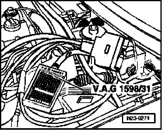 - Connect VAG 1598/31 test box to connectors of wiring harness.