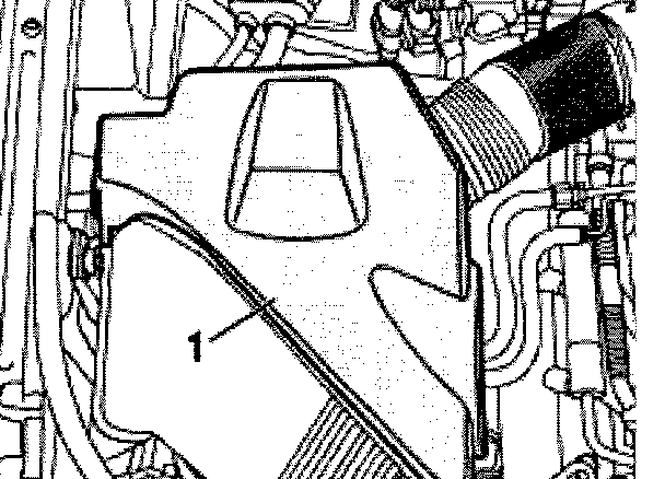 - Remove cover -1- in engine compartment (right side).