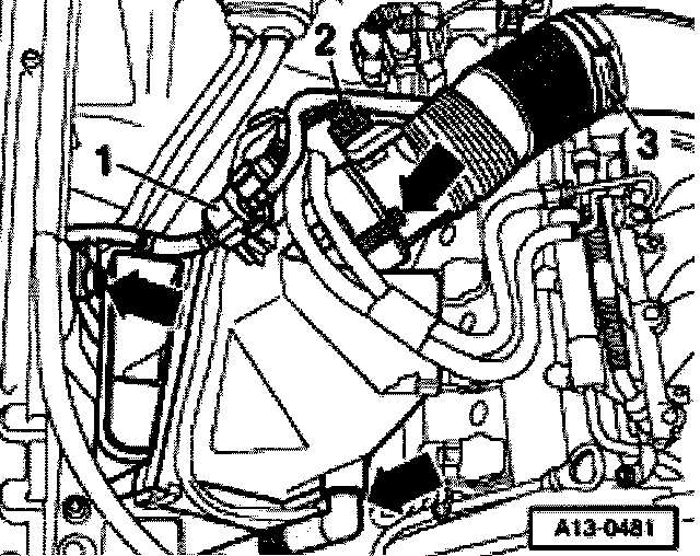 - Remove cover -1- in engine compartment (left side).