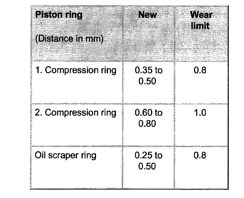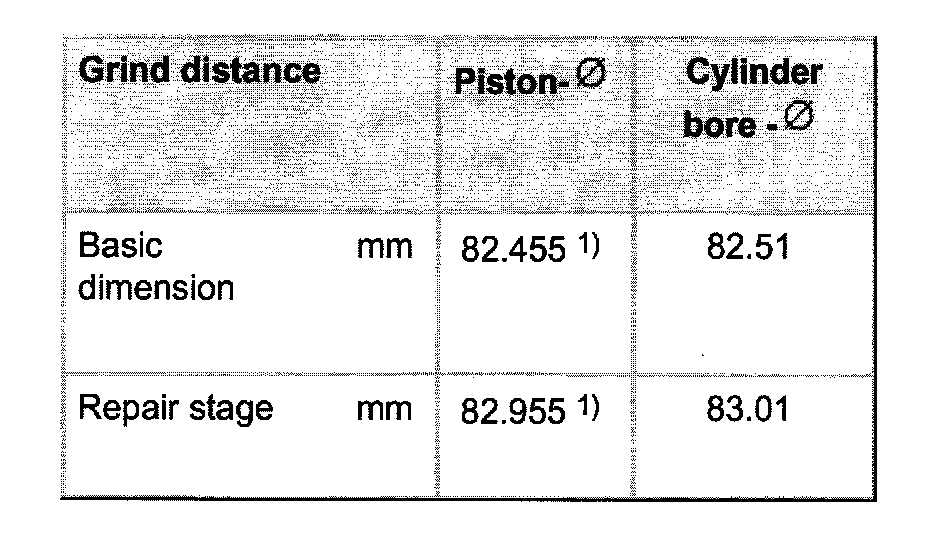 Specified dimension piston and cylinder measurements, Refer to Piston, Engine, Service and Repair.