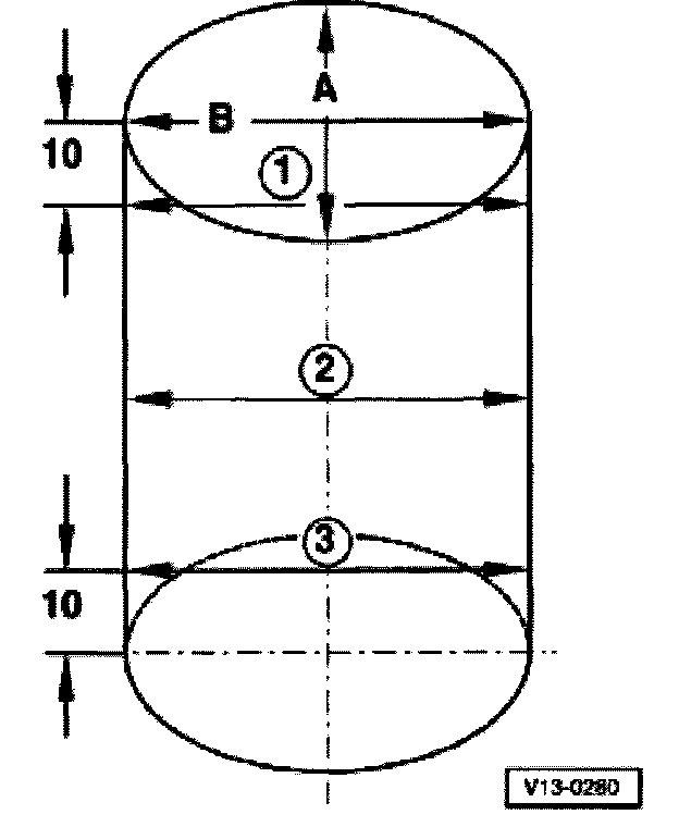- Measure approximately 10 mm from lower edge, at a 90° angle to piston pin axis.
