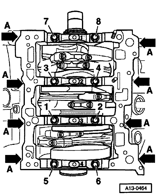 - Tighten bearing cap nuts or bolts in the following sequence: