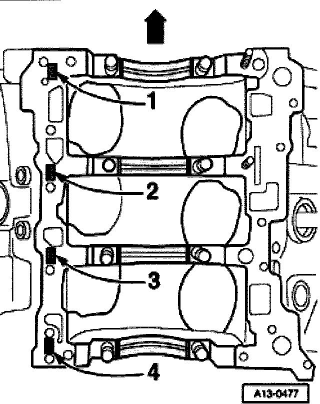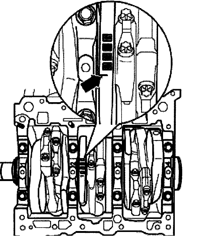 Allocation of bearing shells to cylinder block is marked by a letter beside the respective bearing.