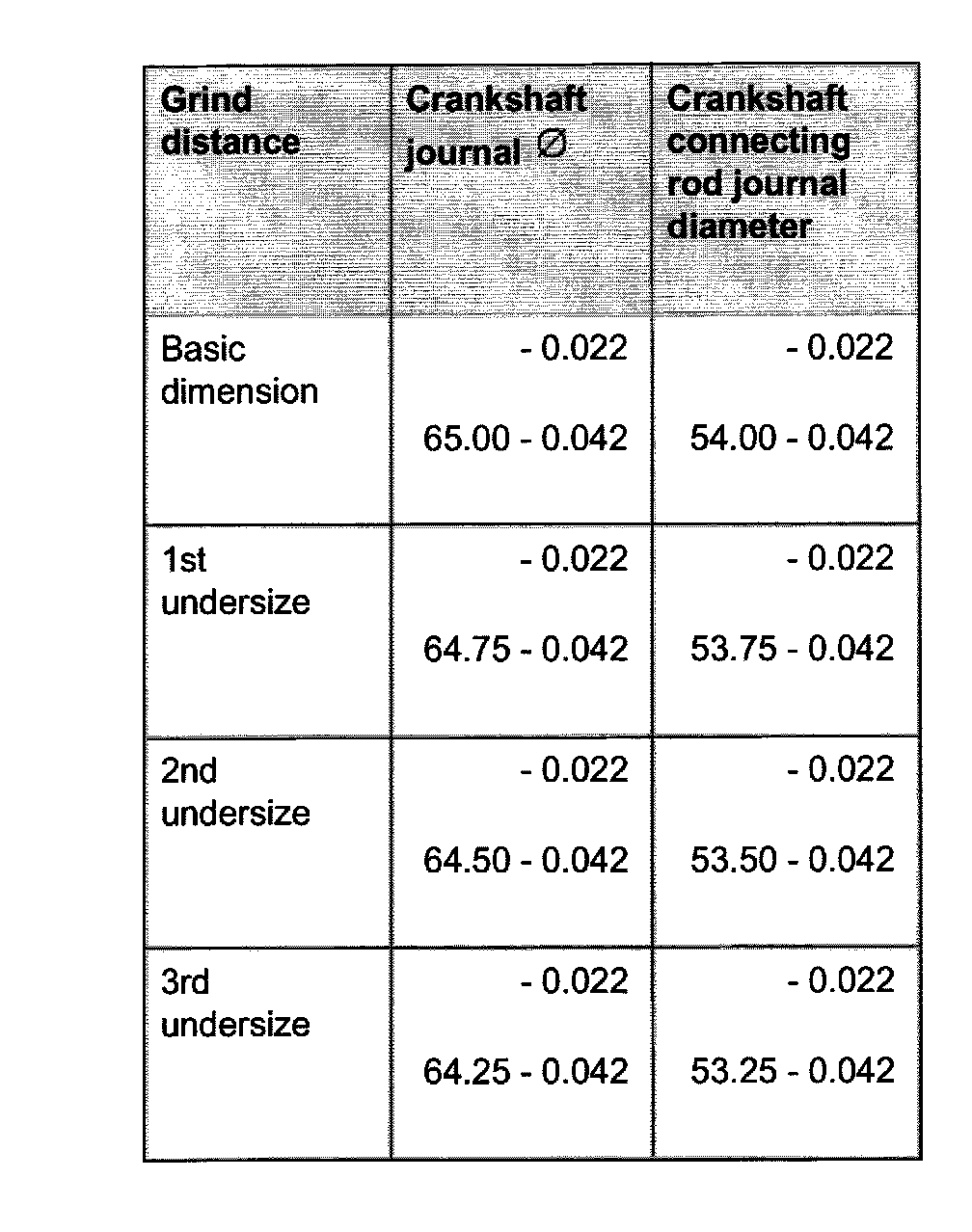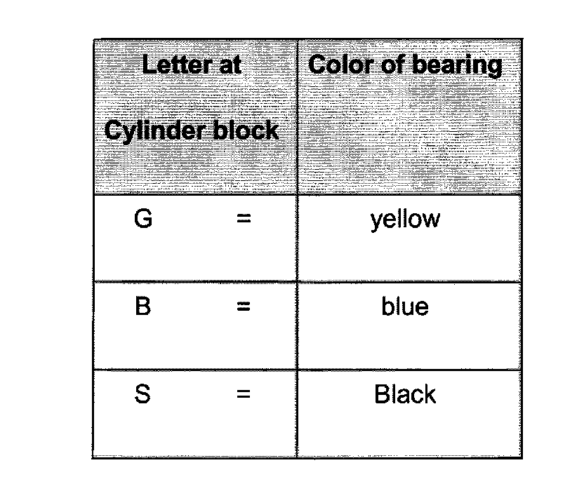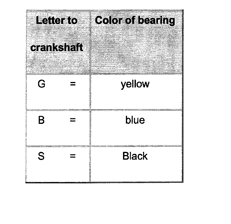 Bearing shells with the correct thickness are allocated to the cylinder block in the factory. Colored dots on the bearing shells serve for identifying bearing shell thickness.