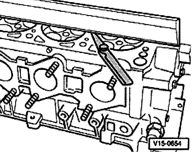 - Using straightedge and feeler gauge, check cylinder head for warpage at multiple points.