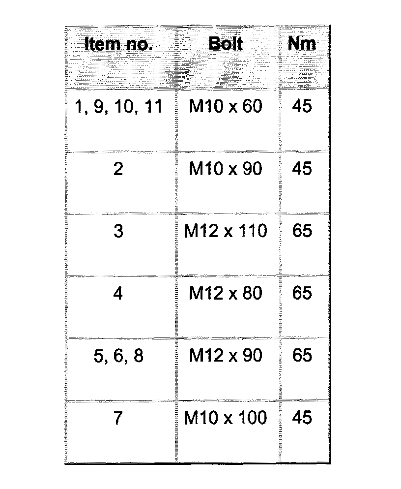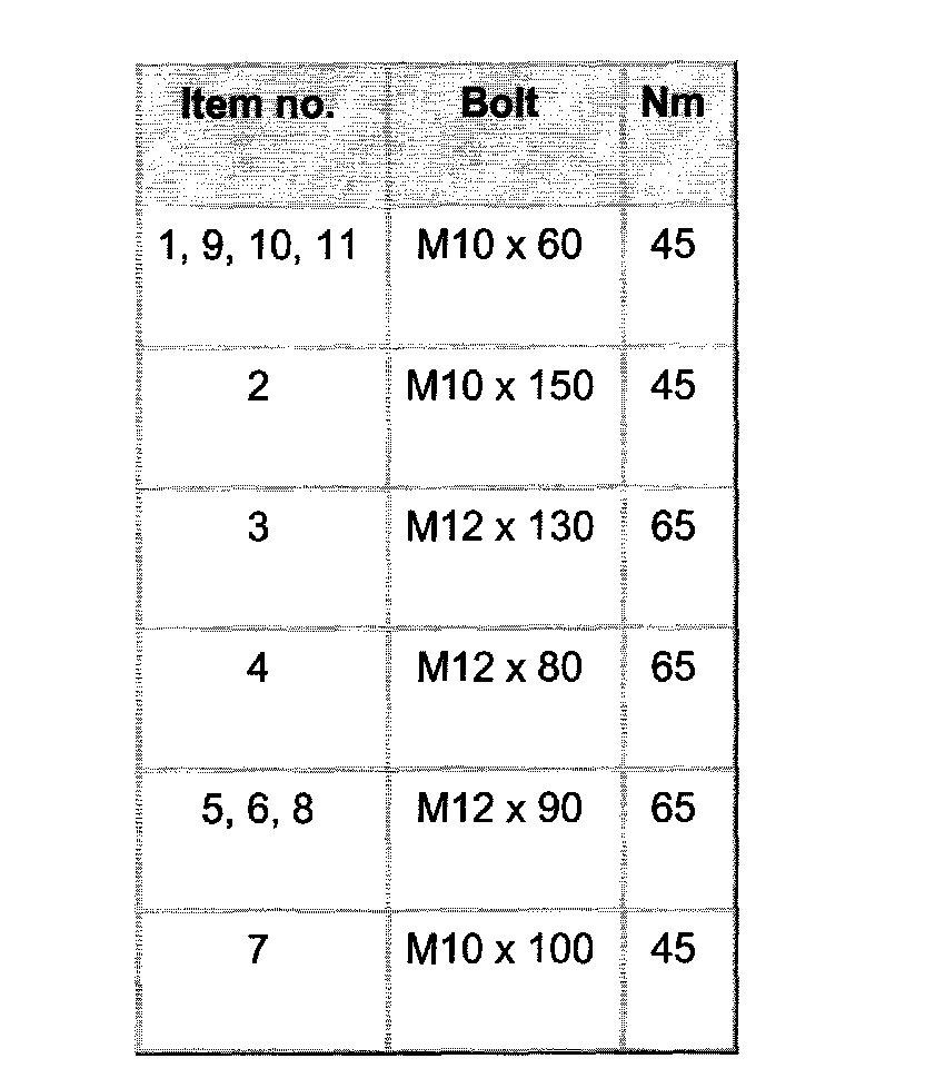 3. Using rigid wrench turn nuts -1 to 8 an additional 90° (1/4 turn.