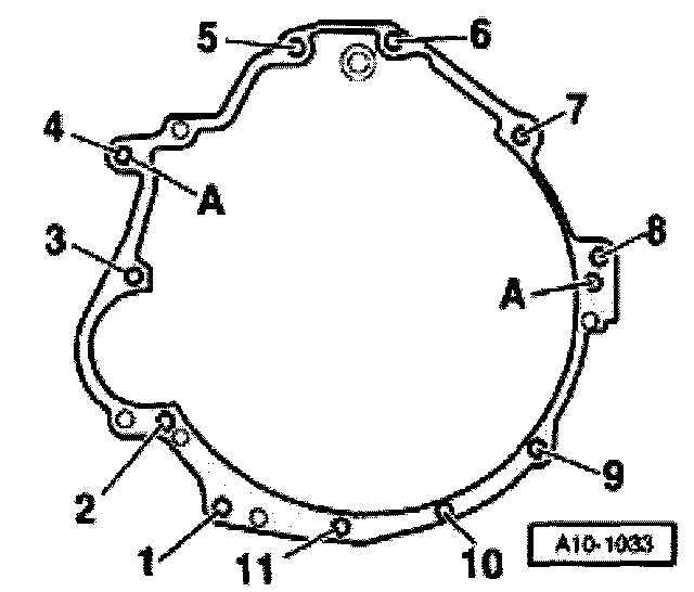 - Replace bolts -A- and nuts -1 to 8-.